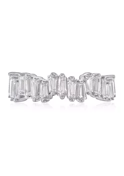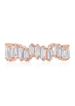 KIERA 1/8 ct. t.w. Cubic Zirconia Platinum Plated Sterling Silver Dainty Open Cuff Ring