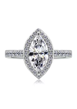 KIERA 2.27 ct. t.w. Cubic Zirconia Platinum Plated Sterling Silver Marquise Halo Solitaire Ring