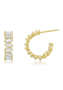KIERA Yellow Gold Plated Sterling Silver 3.46cttw Cubic Zirconia Thin Princess Baguette Hoop Earring