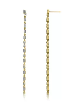 KIERA Yellow Gold Plated Sterling Silver 1.85 ct. t.w. Cubic Zirconia Baguette Thread Earring