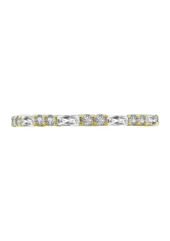 KIERA Yellow Gold Plated Sterling Silver Cubic Zirconia White Baguette Cut Eternity Band Ring