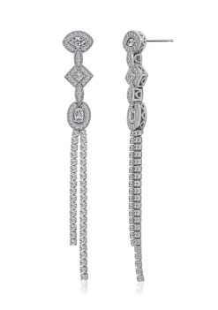KIERA Platinum Plated Sterling Silver 1.67 ct. t.w. Cubic Zirconia Gala Fringe Tassel Drop Earrings