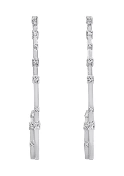 KIERA Platinum Plated Sterling Silver 1 ct. t.w. Cubic Zirconia Pave Double Link Drop Stud Earrings