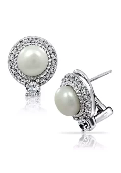KIERA Rhodium Plated Sterling Silver 6 Millimeter Cubic Zirconia Asscher Cut Halo Stud Earring