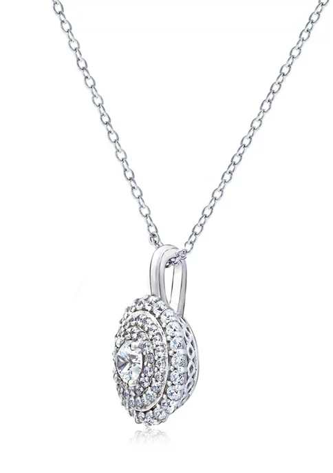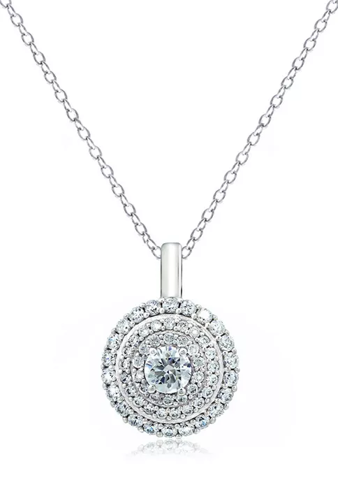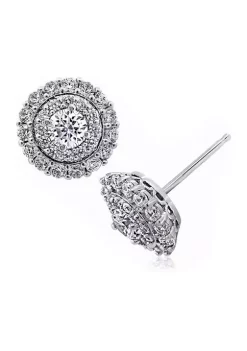 KIERA Rhodium Plated Sterling Silver 1.59 ct. t.w. Cubic Zirconia Round Halo Pave Stud Earring