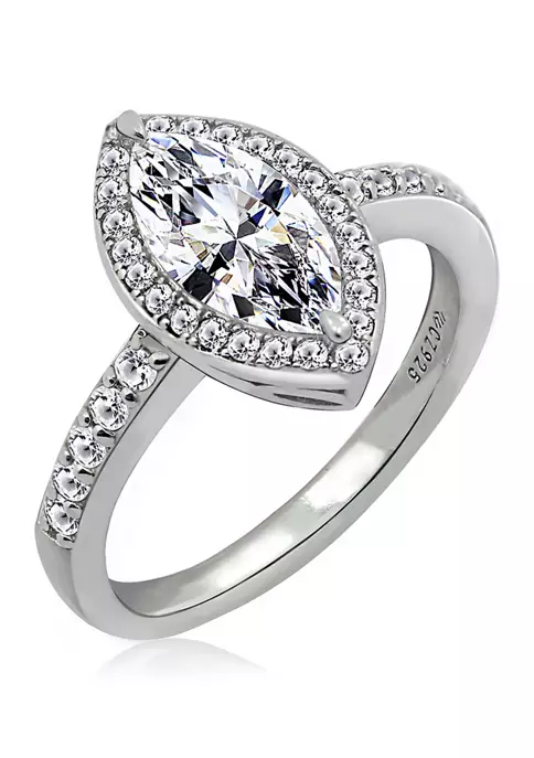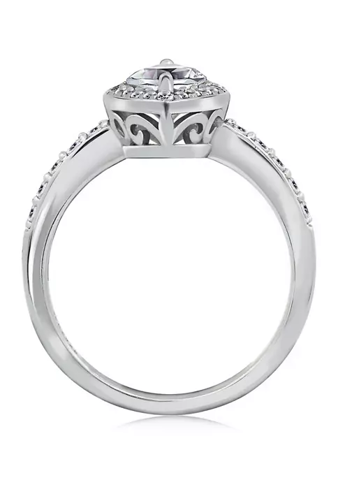 KIERA Rhodium Plated Sterling Silver 3/4 ct. t.w. Cubic Zirconia Ascher Halo Pendant Necklace