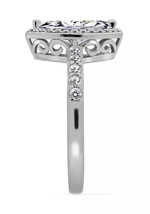 KIERA 3 ct. t.w. Cubic Zirconia Rhodium Plated Sterling Silver Round Cut Double Halo Ring