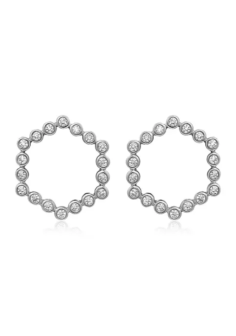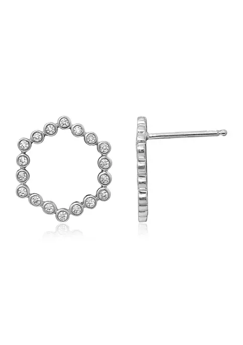 KIERA Rhodium Plated Sterling Silver 4 Millimeter Cubic Zirconia Round Cut Rope Gallery Stud Earring
