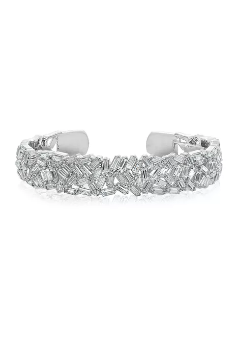 KIERA Rhodium Plated Sterling Silver 8 Millimeter Cubic Zirconia Round Pavé Gallery Stud Earring