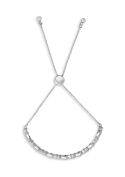 KIERA Platinum Plated Sterling Silver 1.86 ct. t.w. Cubic Zirconia Bezel Drop Station Y-Necklace