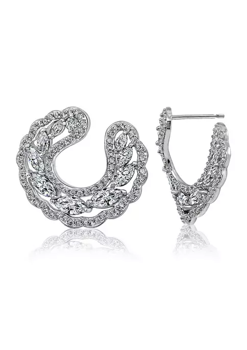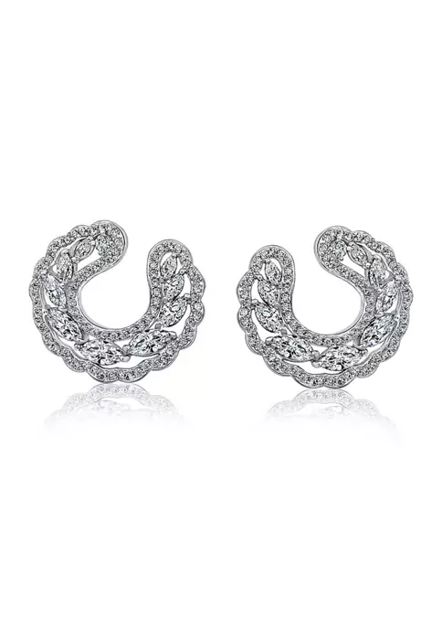 KIERA Rhodium Plated Sterling Silver 4 Millimeter Cubic Zirconia Round Cut Rope Gallery Stud Earring