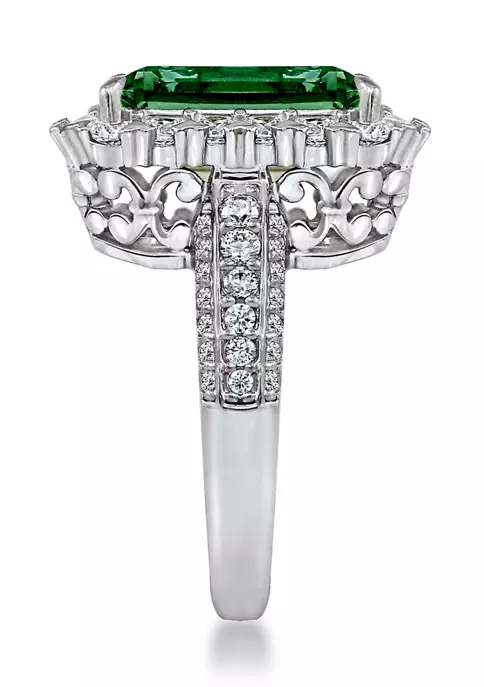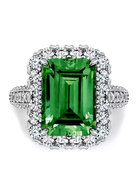 KIERA Platinum Plated Sterling Silver 4 ct. t.w. Cubic Zirconia Emerald Pave Petal Hinge Bracelet