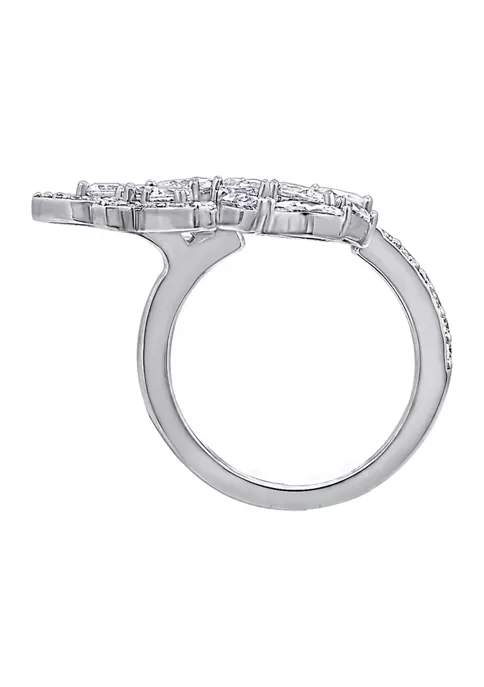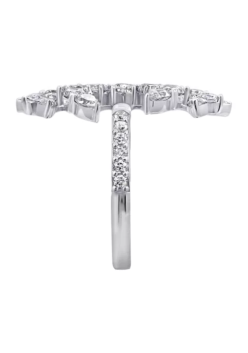 KIERA Rhodium Plated Sterling Silver 1.59 ct. t.w. Cubic Zirconia Round Halo Pave Stud Earring