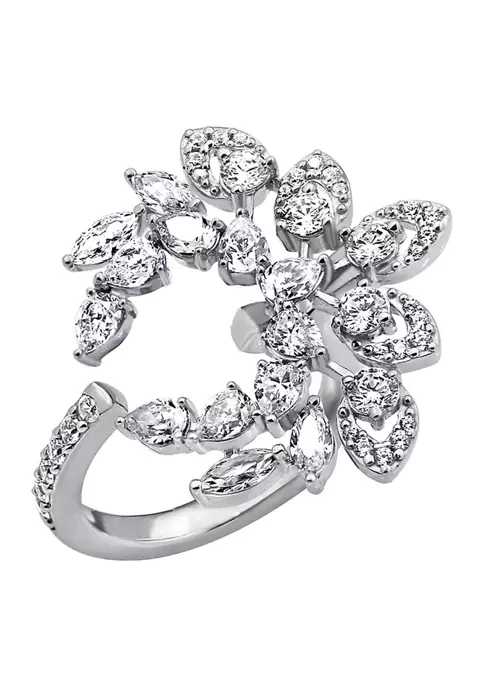 KIERA Platinum Plated Sterling Silver 2.26 ct. t.w. Cubic Zirconia Pear Halo Drop Leverback Earring