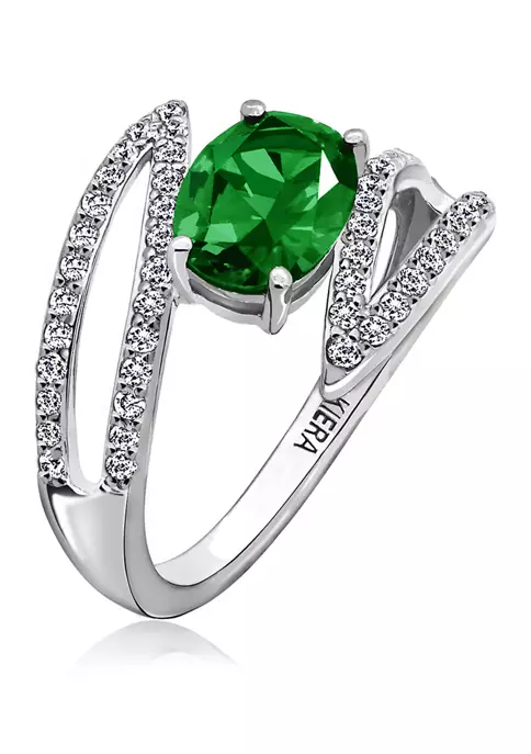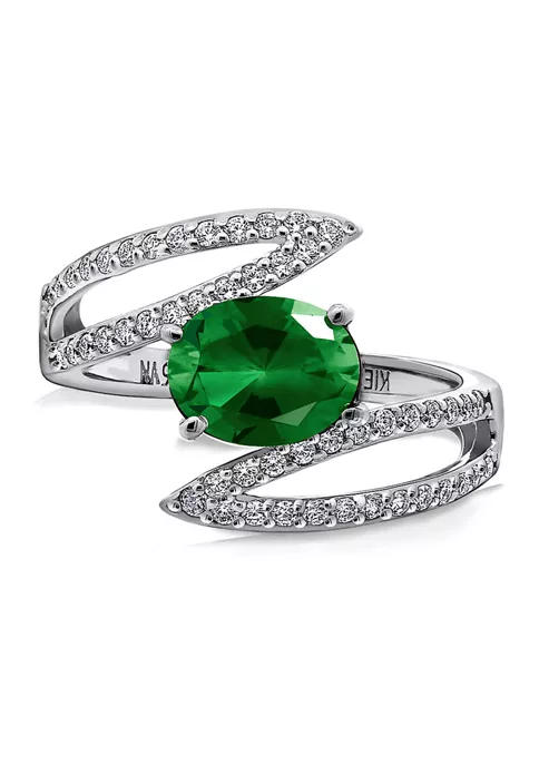 KIERA 1/8 ct. t.w. Cubic Zirconia Platinum Plated Sterling Silver Dainty Open Cuff Ring
