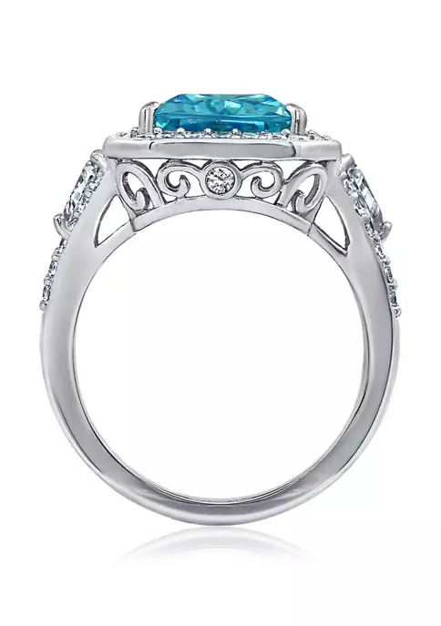 KIERA Rhodium Plated Sterling Silver 3.5 ct. t.w. Emerald Cut Cubic Zirconia 5 Stone Ring