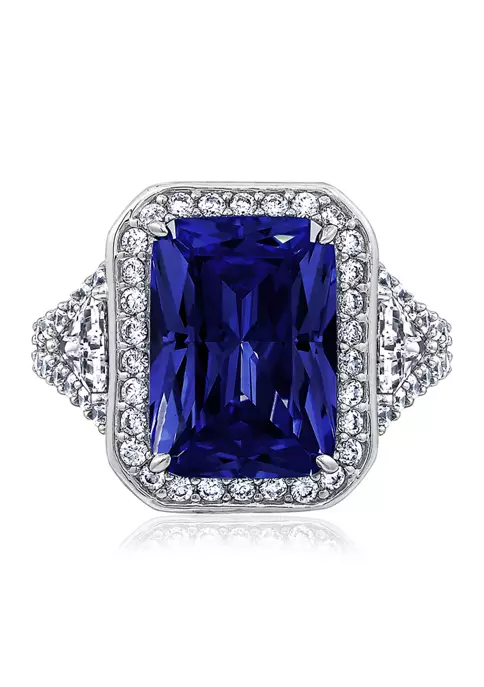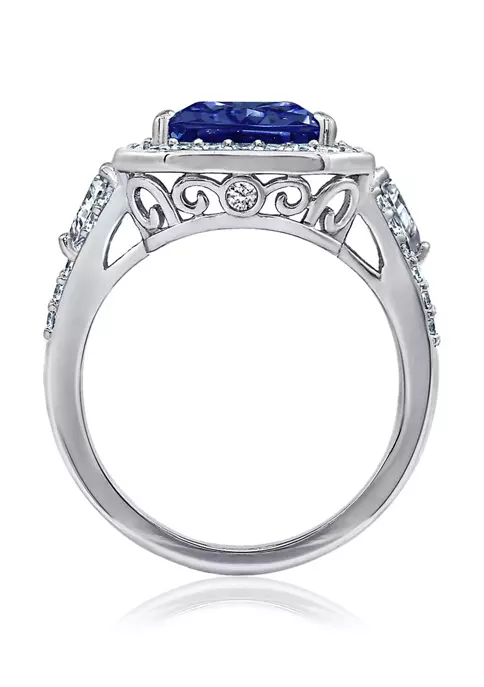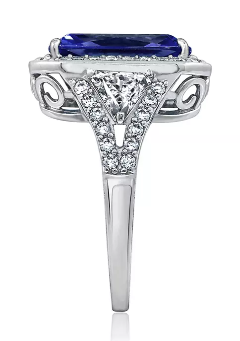 KIERA Rhodium Plated Sterling Silver 3/4 ct. t.w. Cubic Zirconia Ascher Halo Pendant Necklace