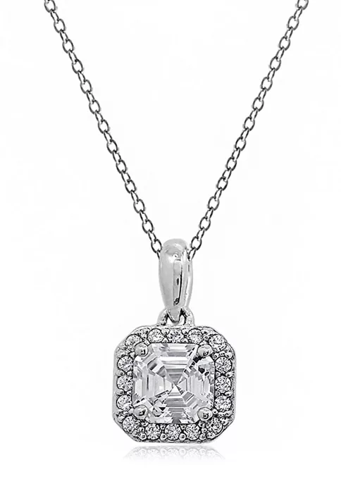 KIERA Rhodium Plated Sterling Silver 6 Millimeter Cubic Zirconia Asscher Cut Halo Stud Earring