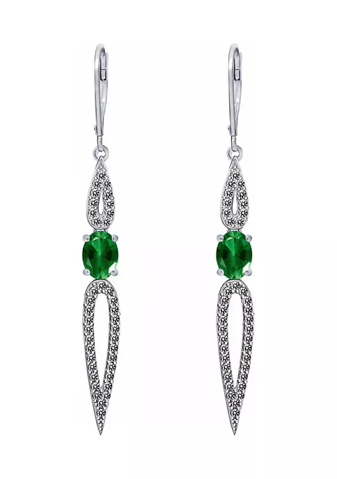 KIERA Platinum Plated Sterling Silver 4.32 ct. t.w. Cubic Zirconia Princess Baguette Thread Earring