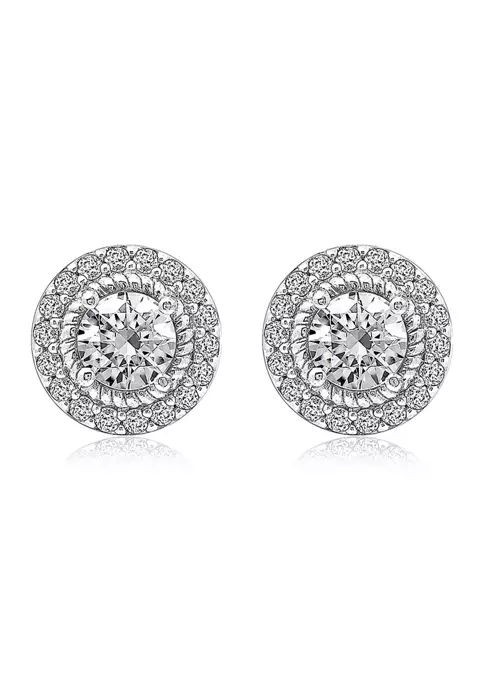 KIERA Platinum Plated Sterling Silver 1 ct. t.w. Cubic Zirconia Pave Double Link Drop Stud Earrings