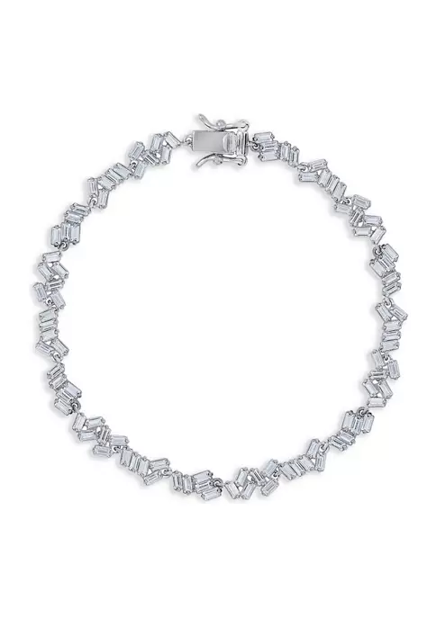 KIERA Platinum Plated Sterling Silver 1 ct. t.w. Cubic Zirconia Pave Double Link Drop Stud Earrings