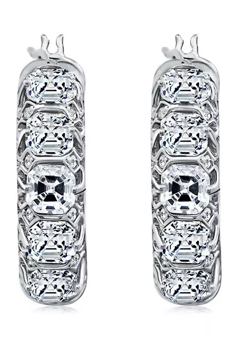 KIERA Platinum Plated Sterling Silver 4.32 ct. t.w. Cubic Zirconia Princess Baguette Thread Earring