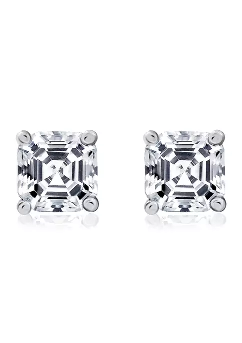 KIERA Rhodium Plated Sterling Silver 1.3 ct. t.w. Cubic Zirconia Round Halo Rope Stud Earring