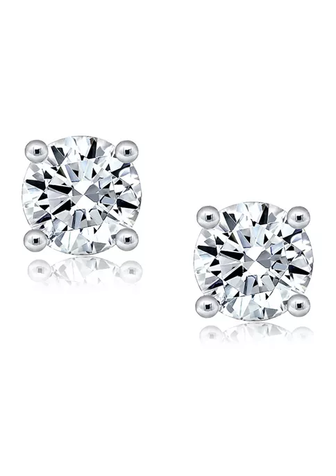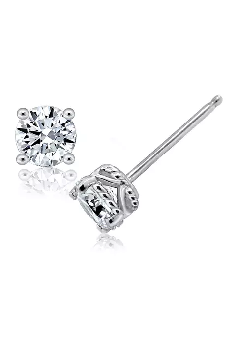 KIERA Rhodium Plated Sterling Silver 4 Millimeter Cubic Zirconia Round Cut Rope Gallery Stud Earring