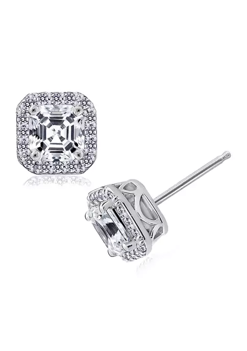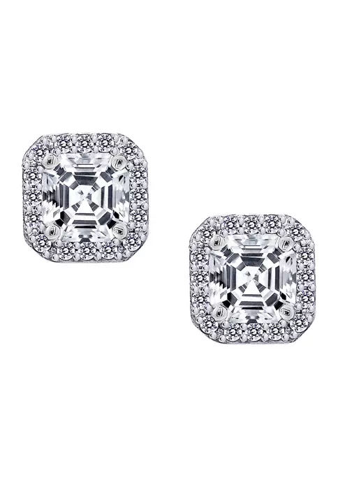 KIERA Rhodium Plated Sterling Silver 1.59 ct. t.w. Cubic Zirconia Round Halo Pave Stud Earring