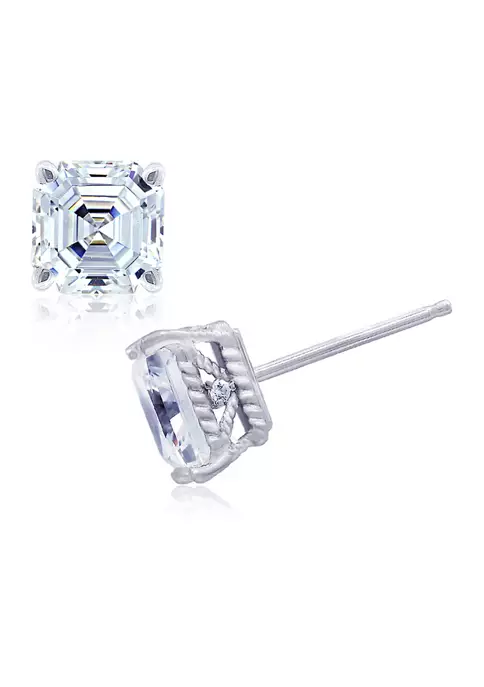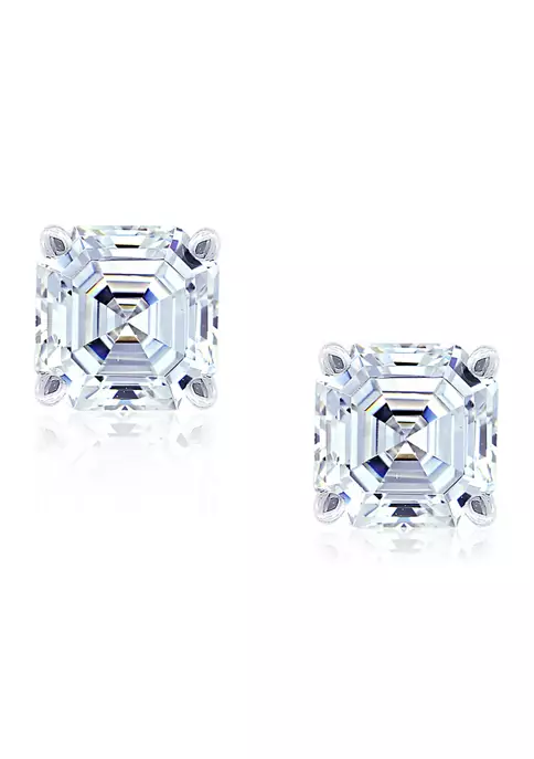 KIERA Platinum Plated Sterling Silver 4.32 ct. t.w. Cubic Zirconia Princess Baguette Thread Earring