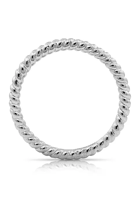KIERA Rhodium Plated Sterling Silver 4 Millimeter Cubic Zirconia Round Cut Rope Gallery Stud Earring