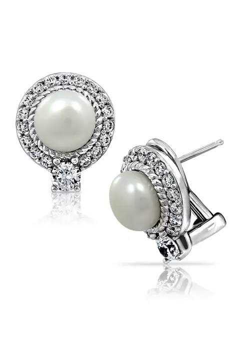 KIERA Rhodium Plated Sterling Silver 1.3 ct. t.w. Cubic Zirconia Round Halo Rope Stud Earring