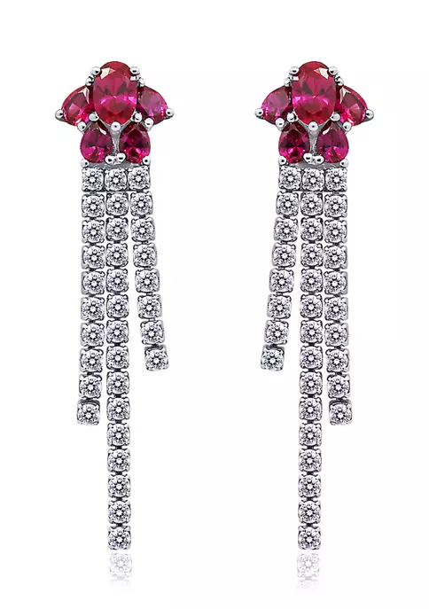 KIERA Platinum Plated Sterling Silver 2.26 ct. t.w. Cubic Zirconia Pear Halo Drop Leverback Earring