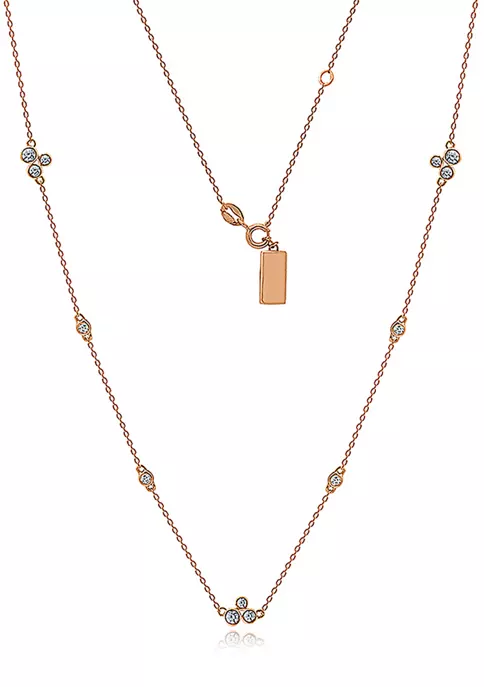KIERA Platinum Plated Sterling Silver 1.86 ct. t.w. Cubic Zirconia Bezel Drop Station Y-Necklace