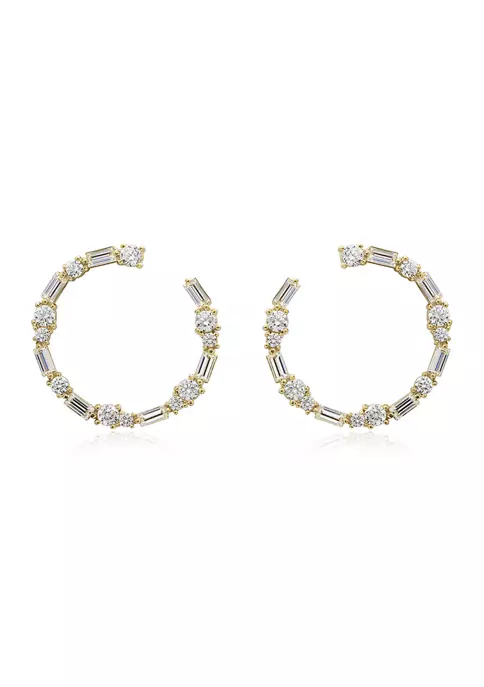 KIERA Yellow Gold Plated Sterling Silver 1.85 ct. t.w. Cubic Zirconia Baguette Thread Earring