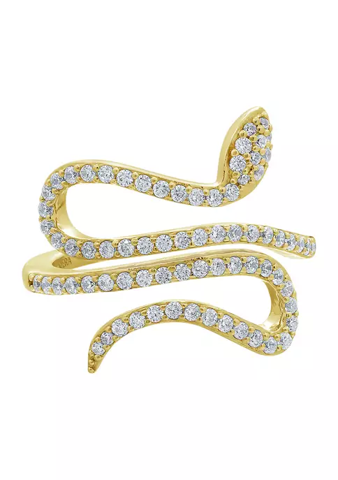 KIERA Yellow Gold Plated Sterling Silver Cubic Zirconia White Baguette Cut Stackable Ring