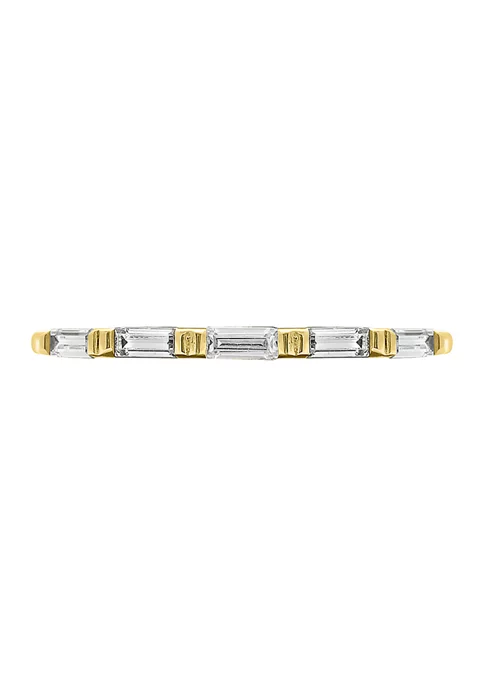 KIERA Yellow Gold Plated Sterling Silver Cubic Zirconia White Baguette Cut Stackable Ring