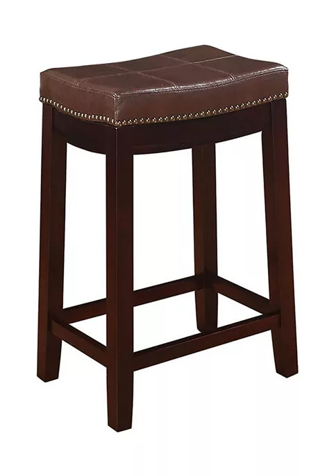 The Dallas Brown Counter Stool will add stylish seating to any counter or high top table. The sturdy wood frame has a dark brown finish accented by a brown vinyl upholstered seat. Brushed Brass nailhead trim and accent stitching adds a patchwork design to the top for an eye-catching detail.